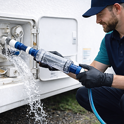 If your RV’s freshwater system hasn’t been professionally sanitized, you’re trusting your drinking, cooking, and washing water to a system that can quietly build up bacteria, biofilm, and stale odors over time. Our Freshwater Flush & Sanitation Service is designed to restore confidence in your water supply by thoroughly cleaning and disinfecting the entire onboard freshwater system—so every tap delivers clean, safe water. This is one of the most important preventive services for seasonal and full-time RV owners. Whether you’re opening for the season, purchasing a used unit, or noticing off-tastes or odors, this service resets your freshwater system to a clean, usable standard. What we do ∙Full system freshwater tank flush ∙Professional sanitation of tank, lines, and fixtures ∙Circulation of approved sanitizing solution through entire plumbing system ∙Faucet and fixture purge to remove buildup and stagnant water ∙Final flush and refill to safe-use condition ∙System check to confirm proper flow and function We use proper procedures and controlled sanitization methods to ensure the system is thoroughly cleaned without damaging components or leaving heavy chemical taste behind. Why customers book this service ∙Removes bacteria, slime, and biofilm buildup ∙Eliminates stale water odors and bad taste ∙Ensures safe water for drinking, cooking, and washing ∙Protects pumps, valves, and plumbing from contamination buildup ∙Essential for seasonal openings and newly purchased RVs ∙Provides peace of mind for families and guests using onboard water When this service is most valuable ∙Start of every camping season ∙After winter storage ∙After purchasing a used RV ∙When water smells, tastes off, or appears discolored ∙Before extended travel or long-term stays ∙As part of routine annual maintenance Pair it with other services Customers often combine this service with tank cleaning, water filter replacement, or hot water system service to fully reset their RV plumbing system for the season. When bundled, it provides a complete top-to-bottom water system refresh. The bottom line Your freshwater system should be something you trust—not something you hope is clean. A professional flush and sanitation ensures your RV water is ready to use from day one and stays that way all season long. Book this service at seasonal opening or anytime water quality is in question to keep your system clean, safe, and reliable.